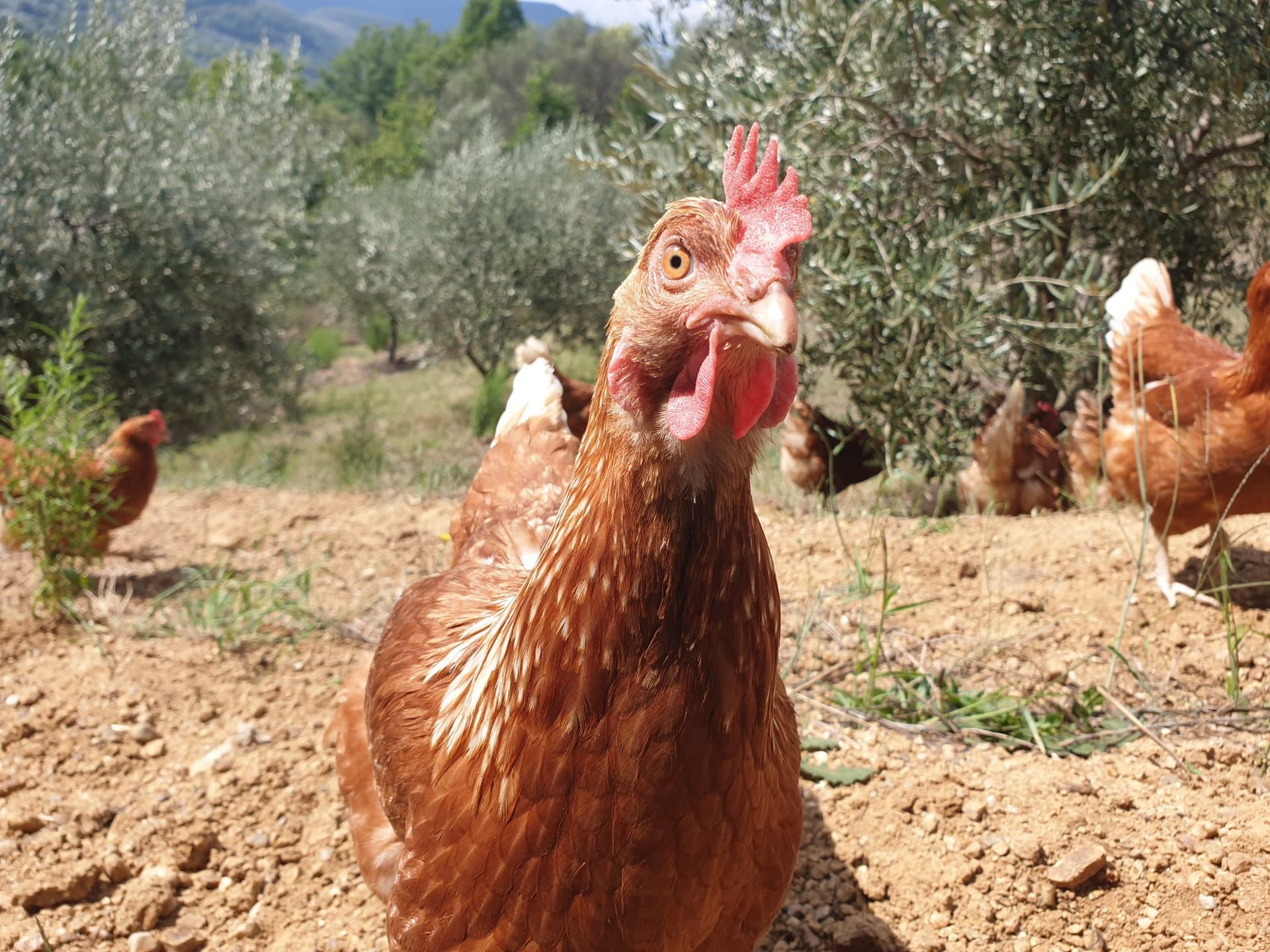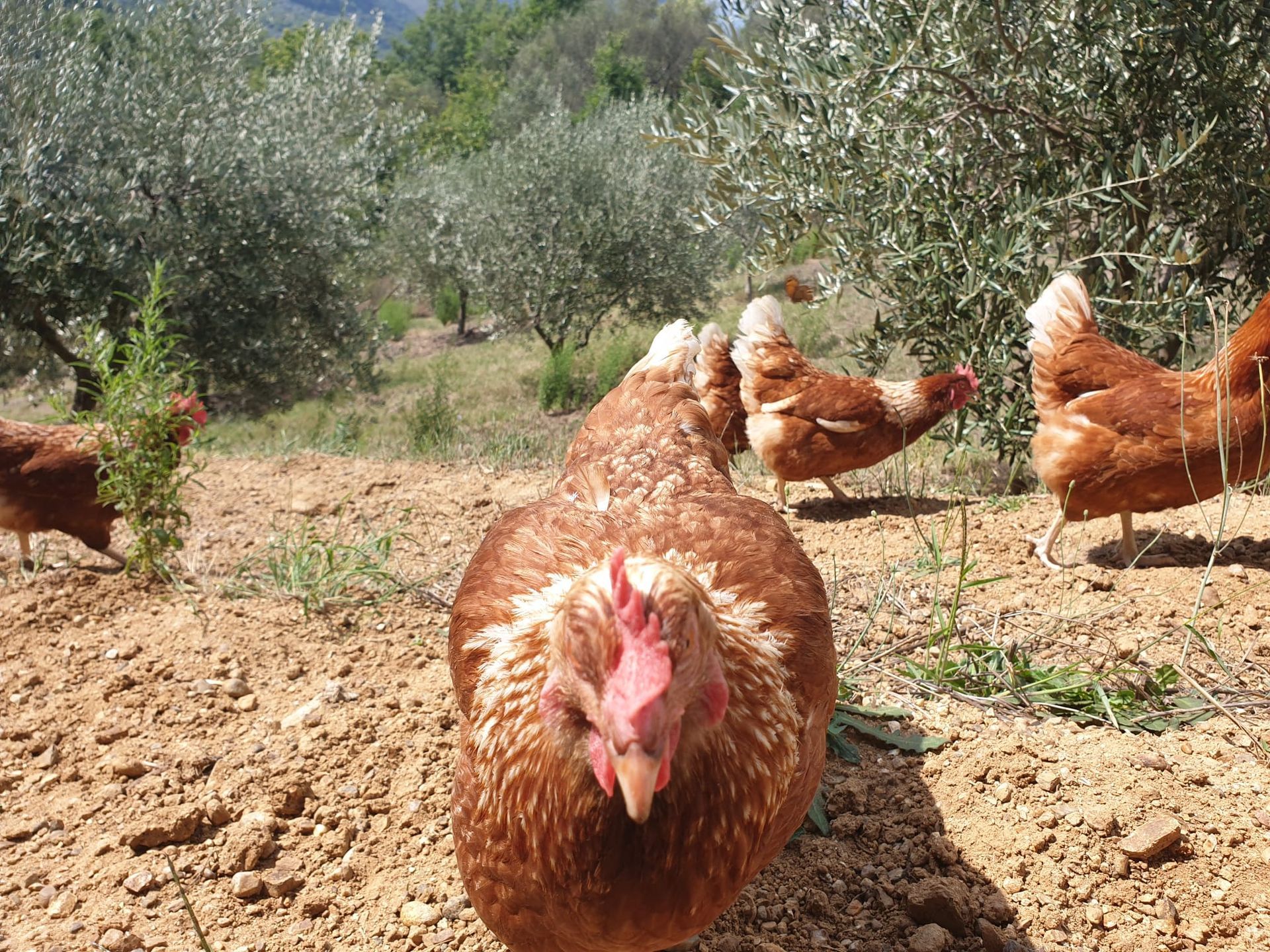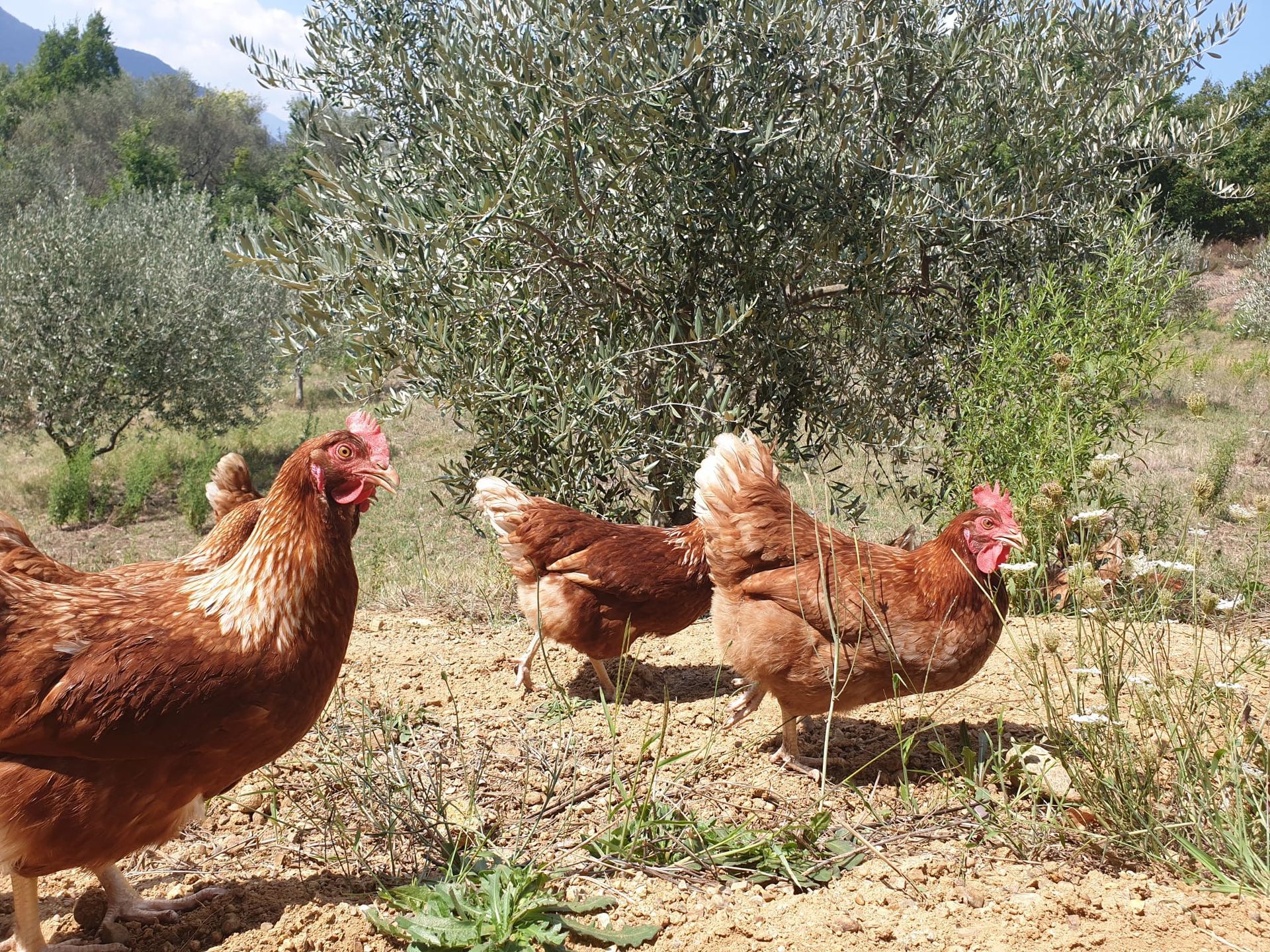 Le nostre galline vivono all’aperto in spazi ampi e protetti, seguite con cura quotidiana per garantire loro una vita serena e naturale.